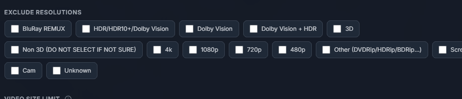 Third, scroll down to the bottom and you'll see "Exclude Resolutions." Here, select based on what you need.